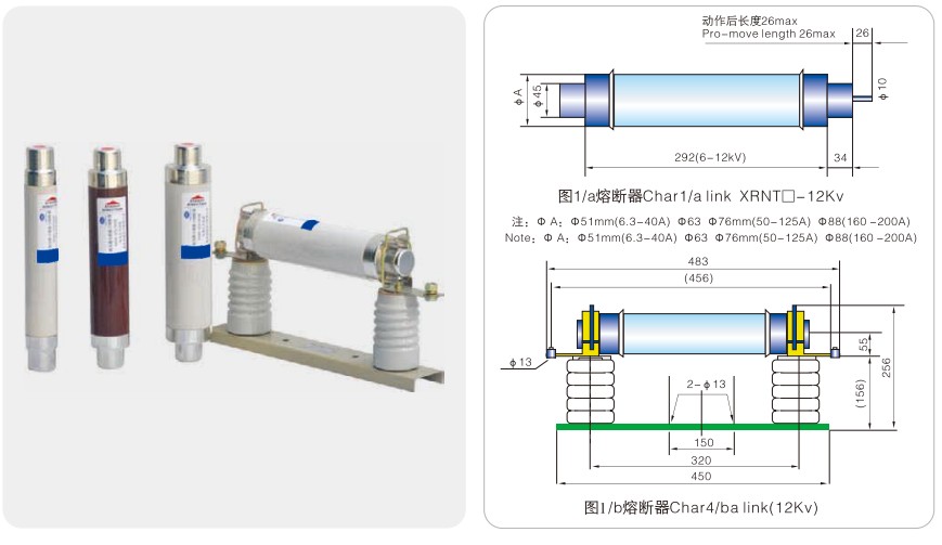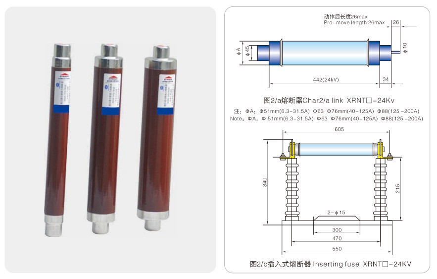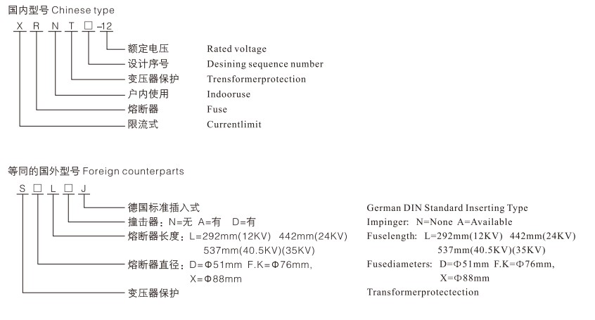 Модел Номинално напрежение Un(kV) Номинален ток на топене In (A) Размер на топящата се тръба①xC(mm) Забележки